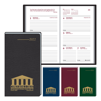 This weekly pocket planner presents the perfect way to stay top-of-mind! Your brand will be front and center every day!