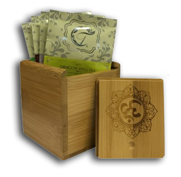 This bamboo tea box can be laser-engraved with your artwork or design. The bamboo has a smooth finish and includes eight tea bags.